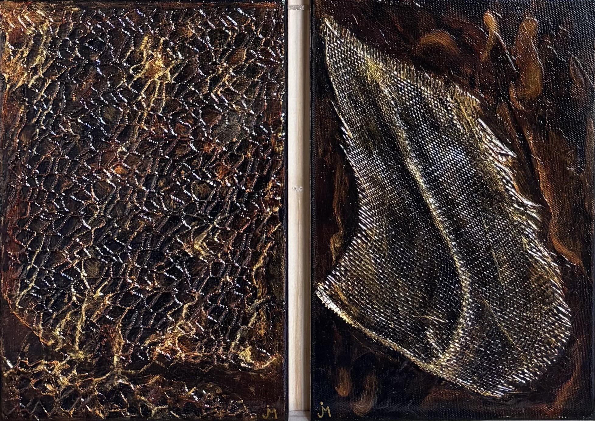 Mixed media (texture paste, acrylic, oils) - 2 canvases